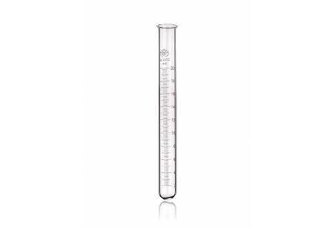 لوله تست مدرج با لبه از شیشهی مقاوم ساخته شده و برای انجام آزمایشهای شیمیایی و میکروبیولوژی طراحی شده است. لبهی لوله امکان گرفتن راحت و ایمن را فراهم میکند و نشانههای مدرج روی لوله، اندازهگیری دقیق حجم مایعات را ممکن میسازد